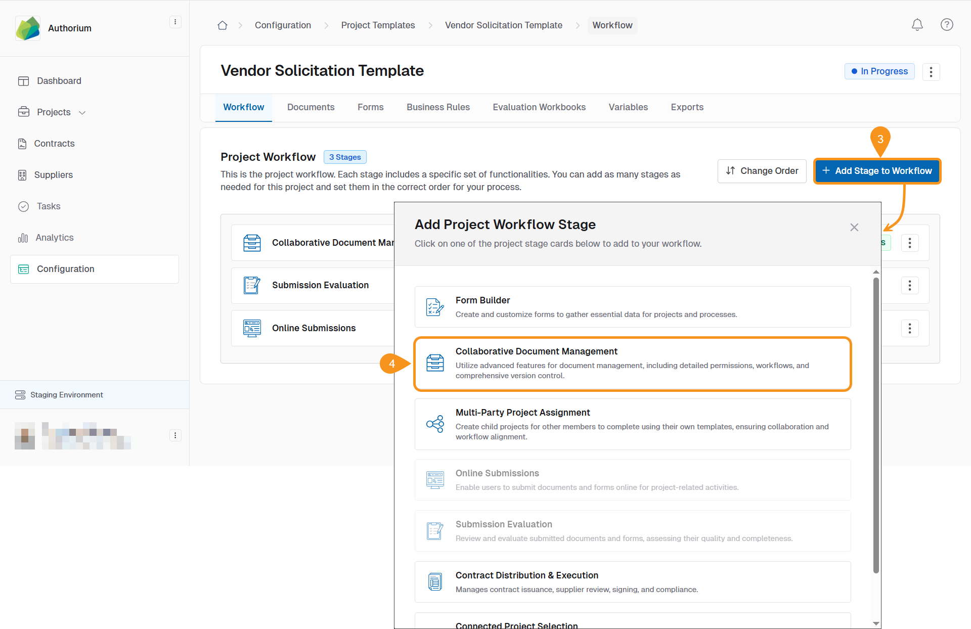 - Select Collaborative Document Management as the additional stage.