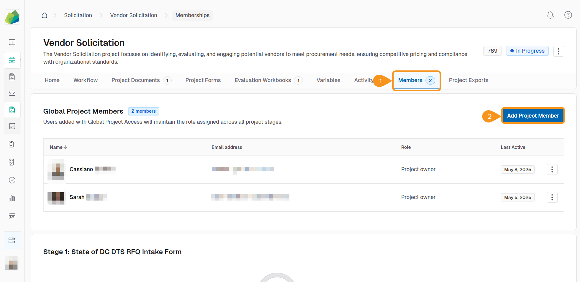 - Add Project Member associated with the CDM stage you want to assign collaborators to by typing the team member’s name into the field. If the member has not previously been invited to the organization, you can type their email address to invite them directly. Press enter in your keyboard to add them to the list. You can invite multiple users at once.