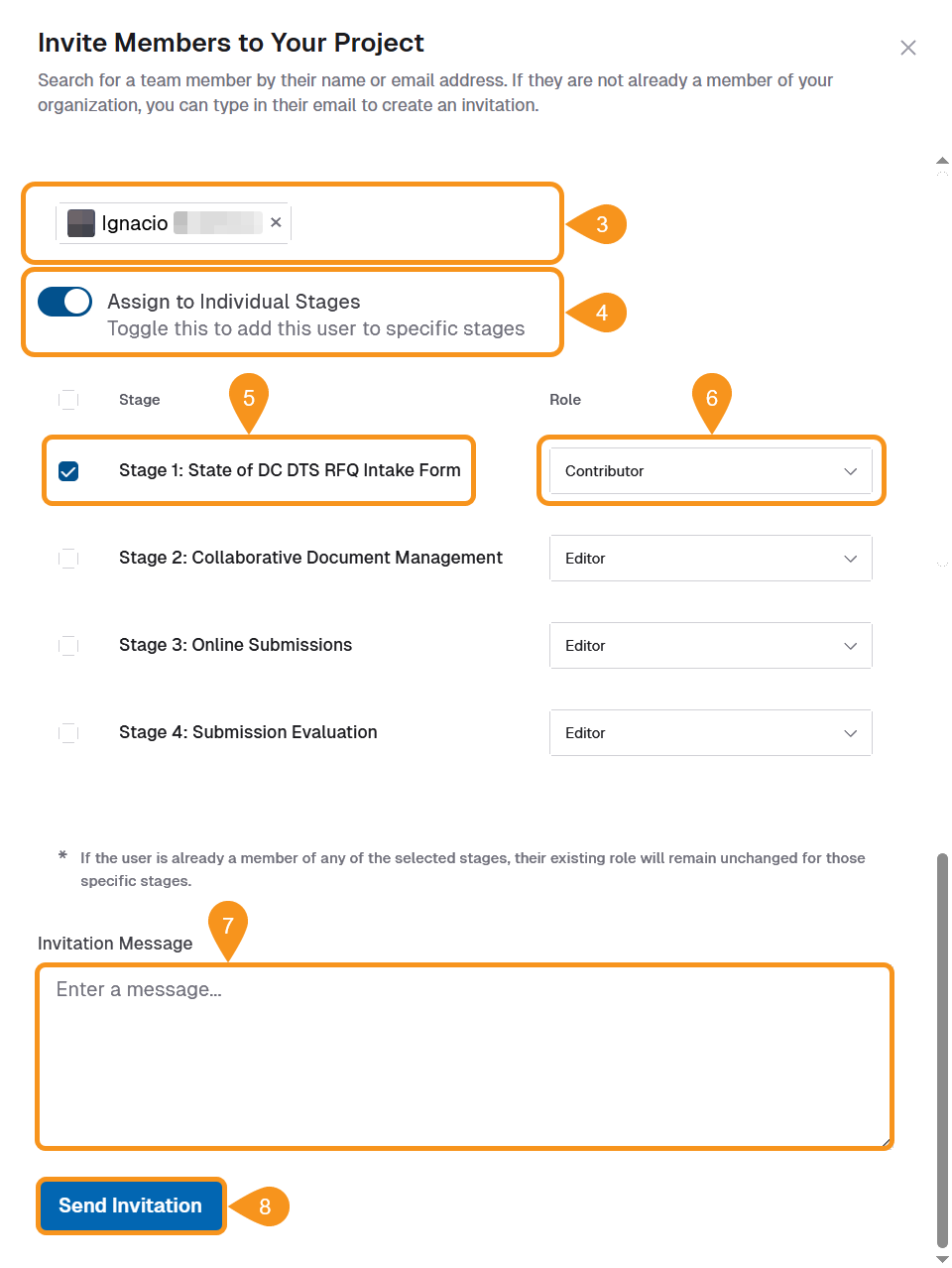 - (Optional) Input an Invitation Message to provide context or instructions to the team member(s).