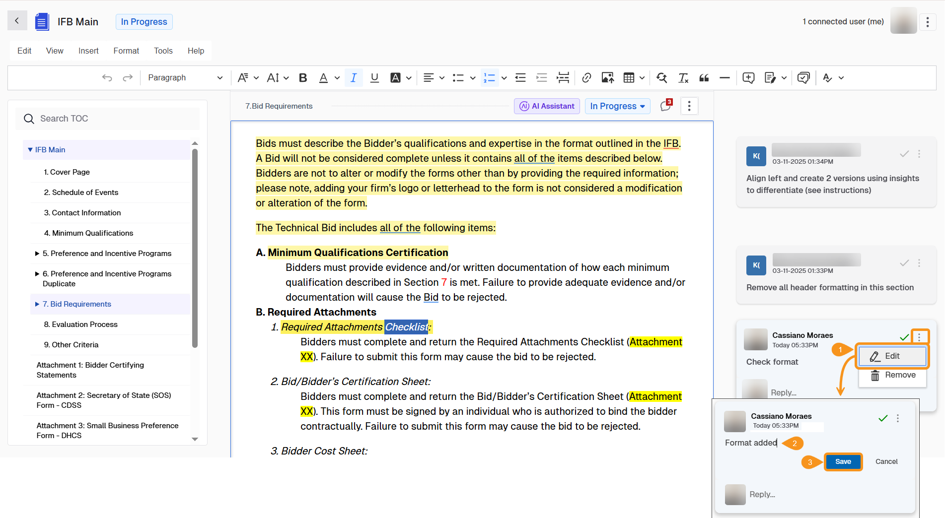 - Add comments to provide feedback, request clarification, or draw attention to specific parts of the document.