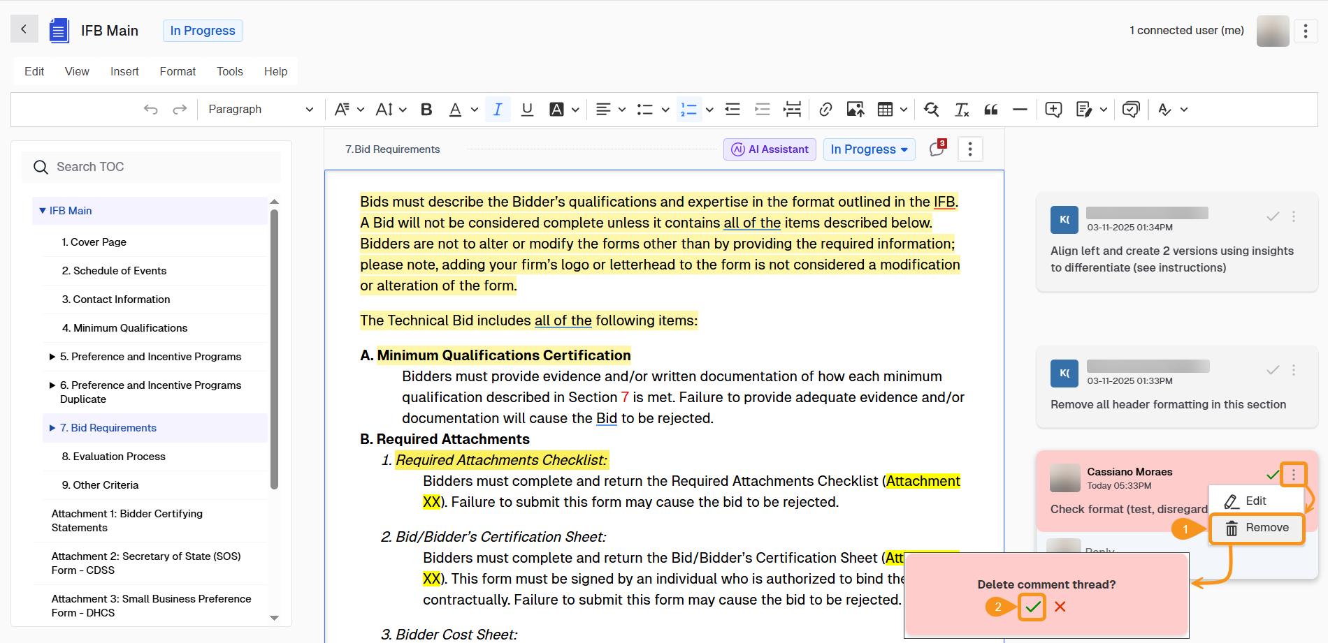- Delete comments to remove obsolete or resolved feedback that is no longer necessary.