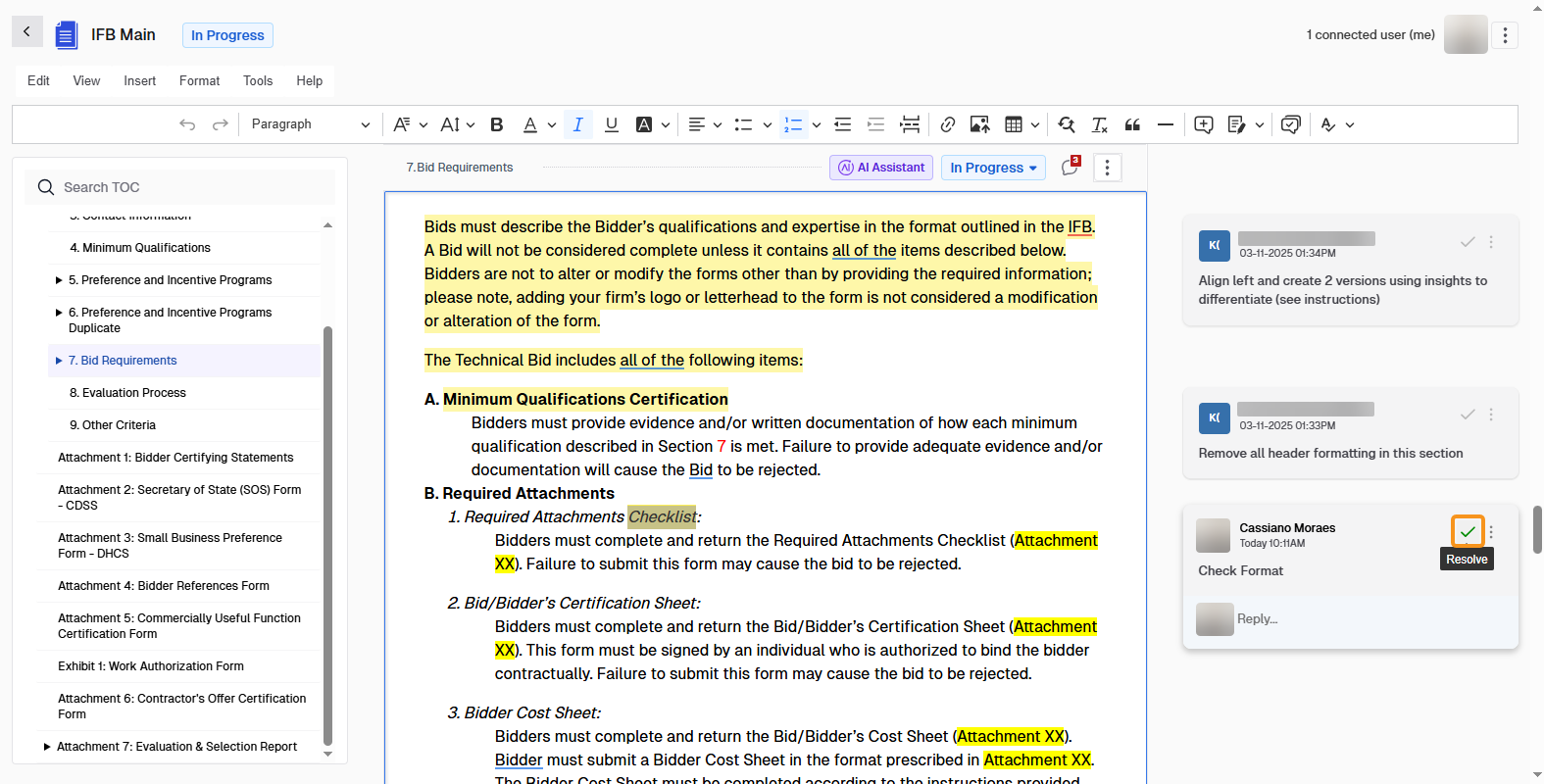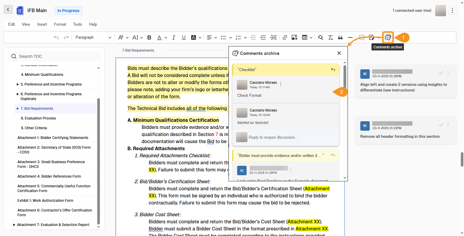 - Browse through the resolved comments across the document to review past feedback and decisions.