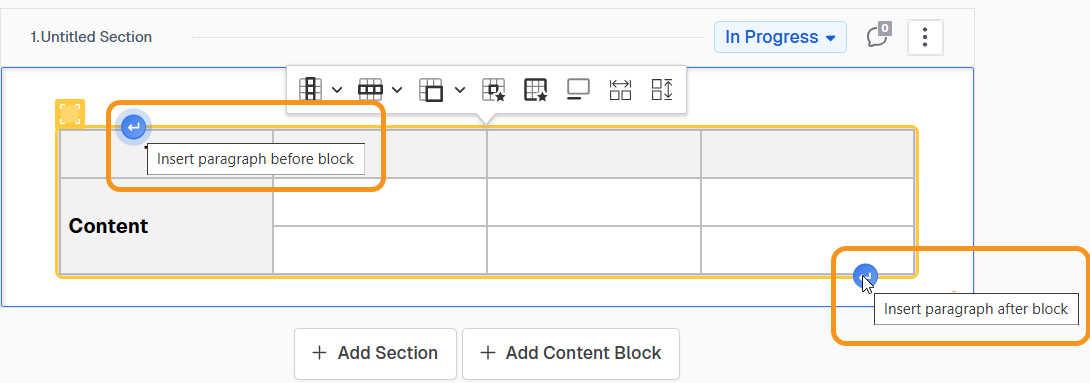 Apart from these configurations, you can insert a paragraph before or after the table.