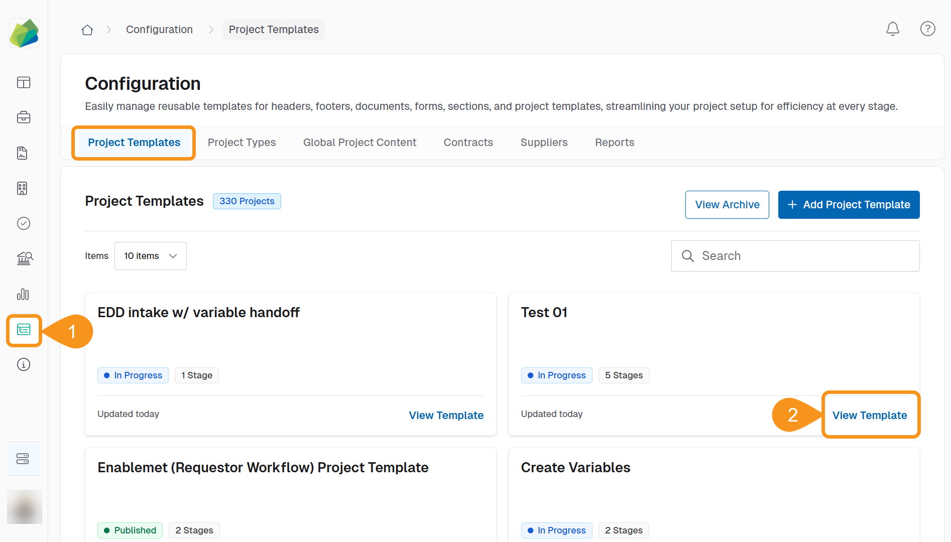 - In the Project Template tab, click View Template next to the template containing the evaluation workbooks.