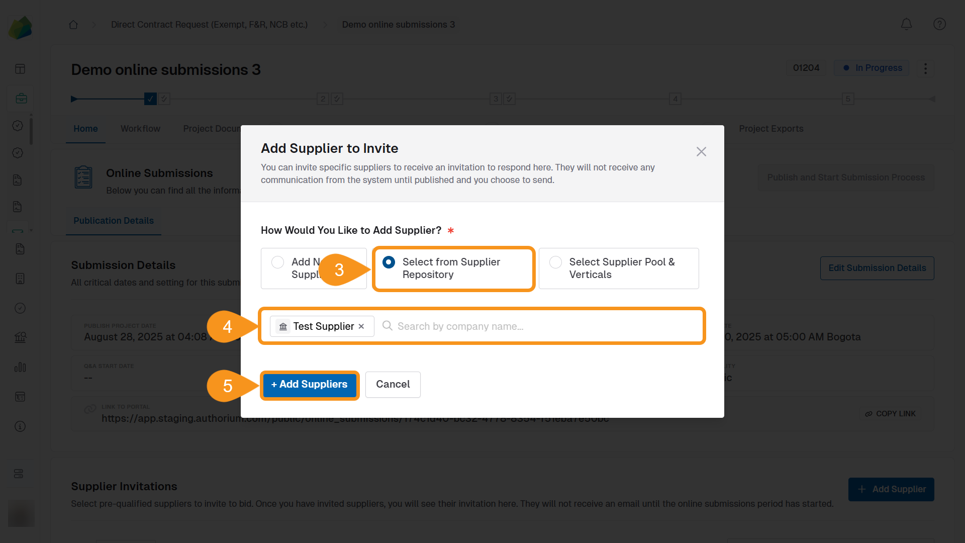 Invite Existing Suppliers to the Submission Process