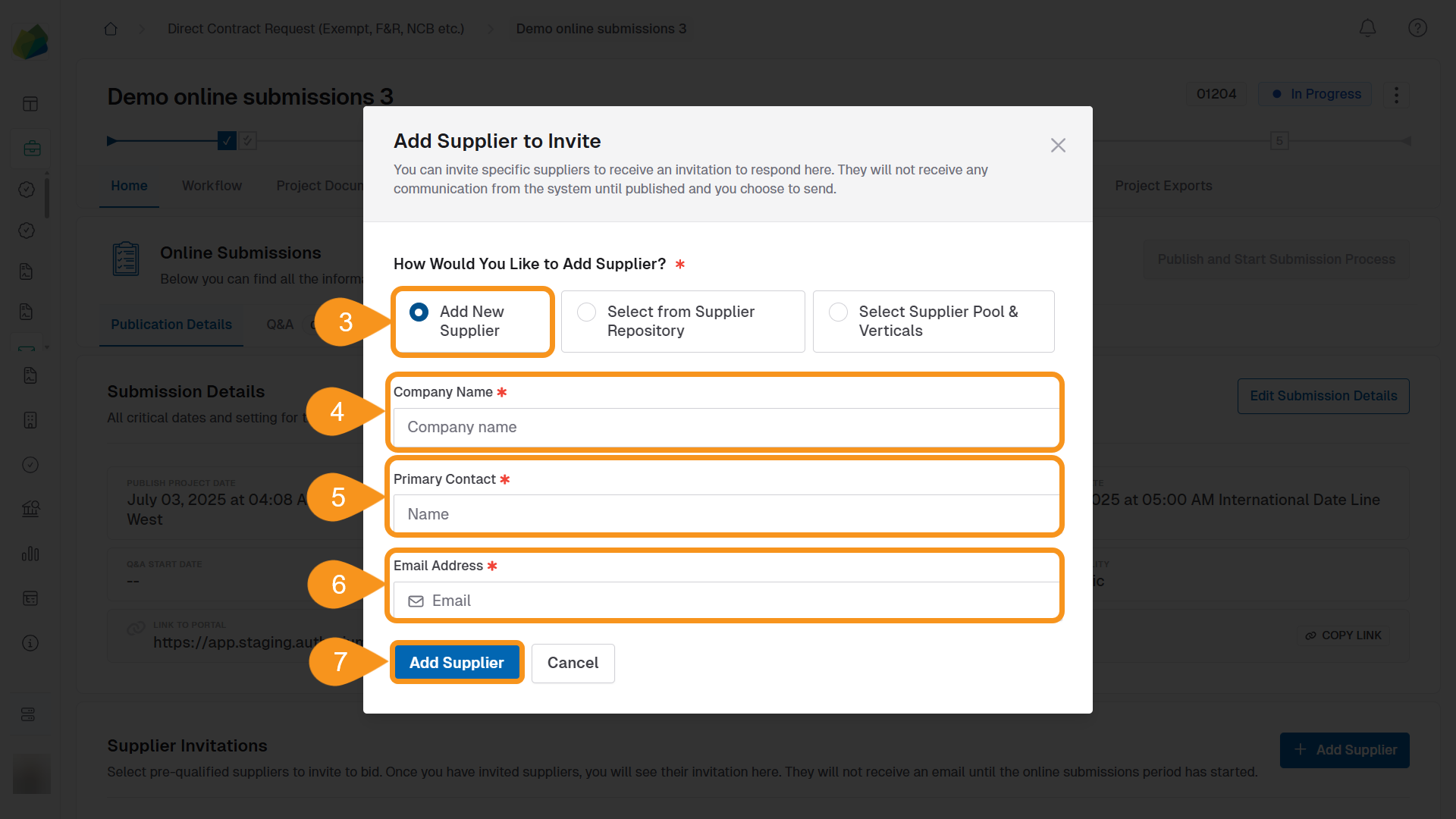 Invite New Suppliers to the Submission Process