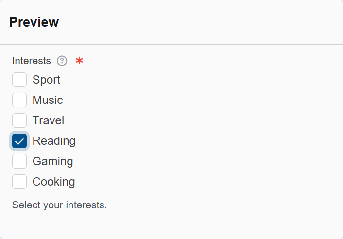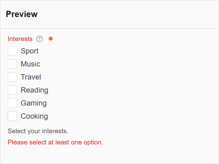 | Minimum checked number | Minimum checkboxes required before form can be submitted. |
