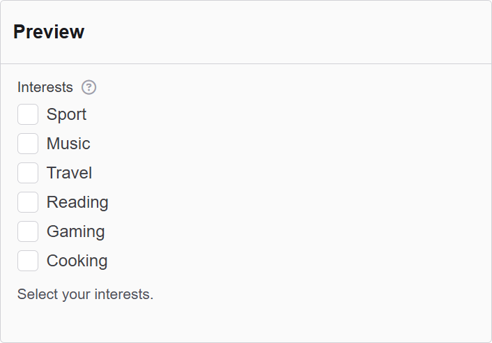This component supports multiple selections by default, making it different from single-select dropdowns or radio buttons. Each option appears with a checkbox that the user can tick or untick.