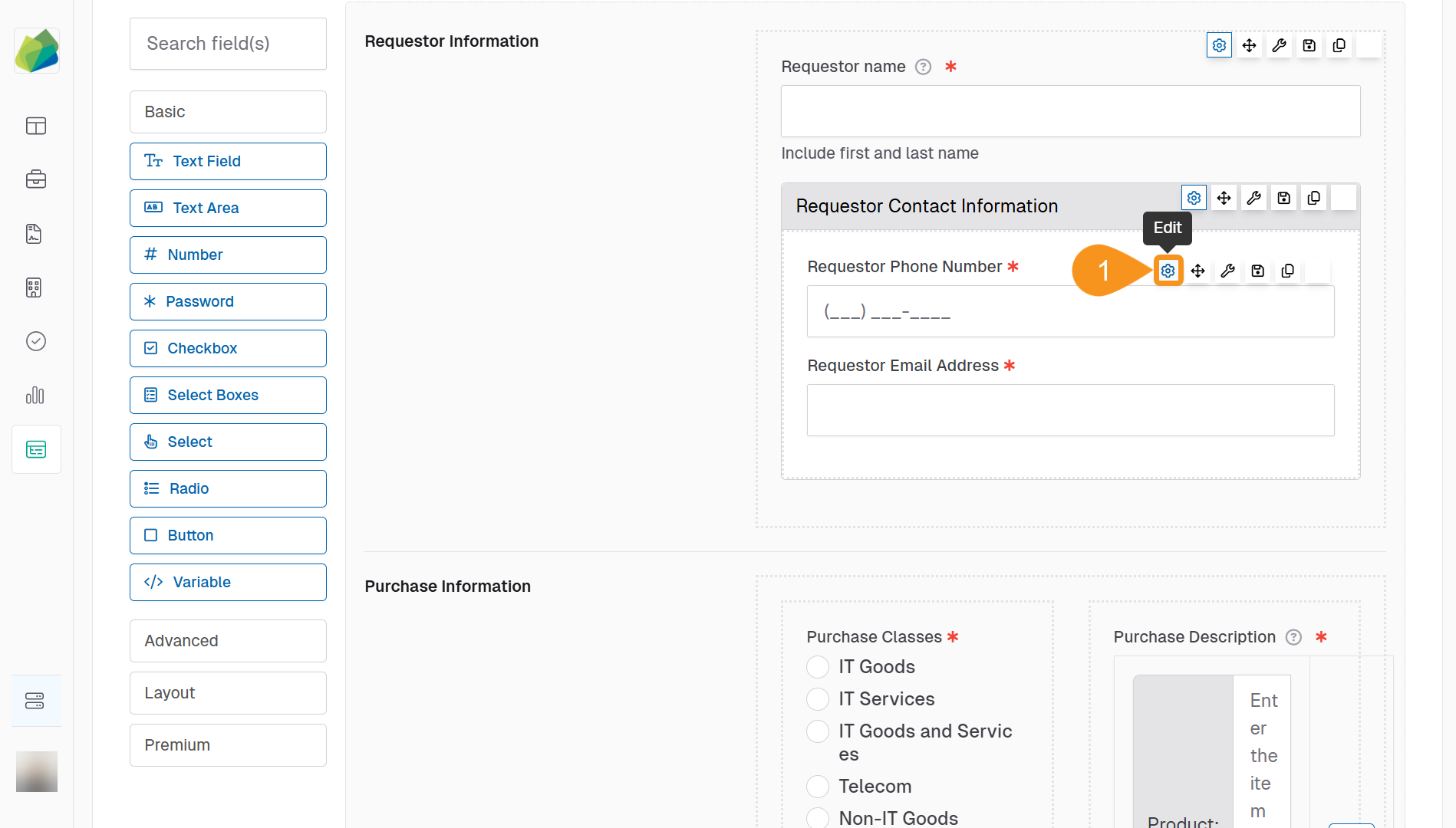 This guide explains how to edit existing basic components in a form template. You can update their display settings, data configuration, validations, and conditionals.