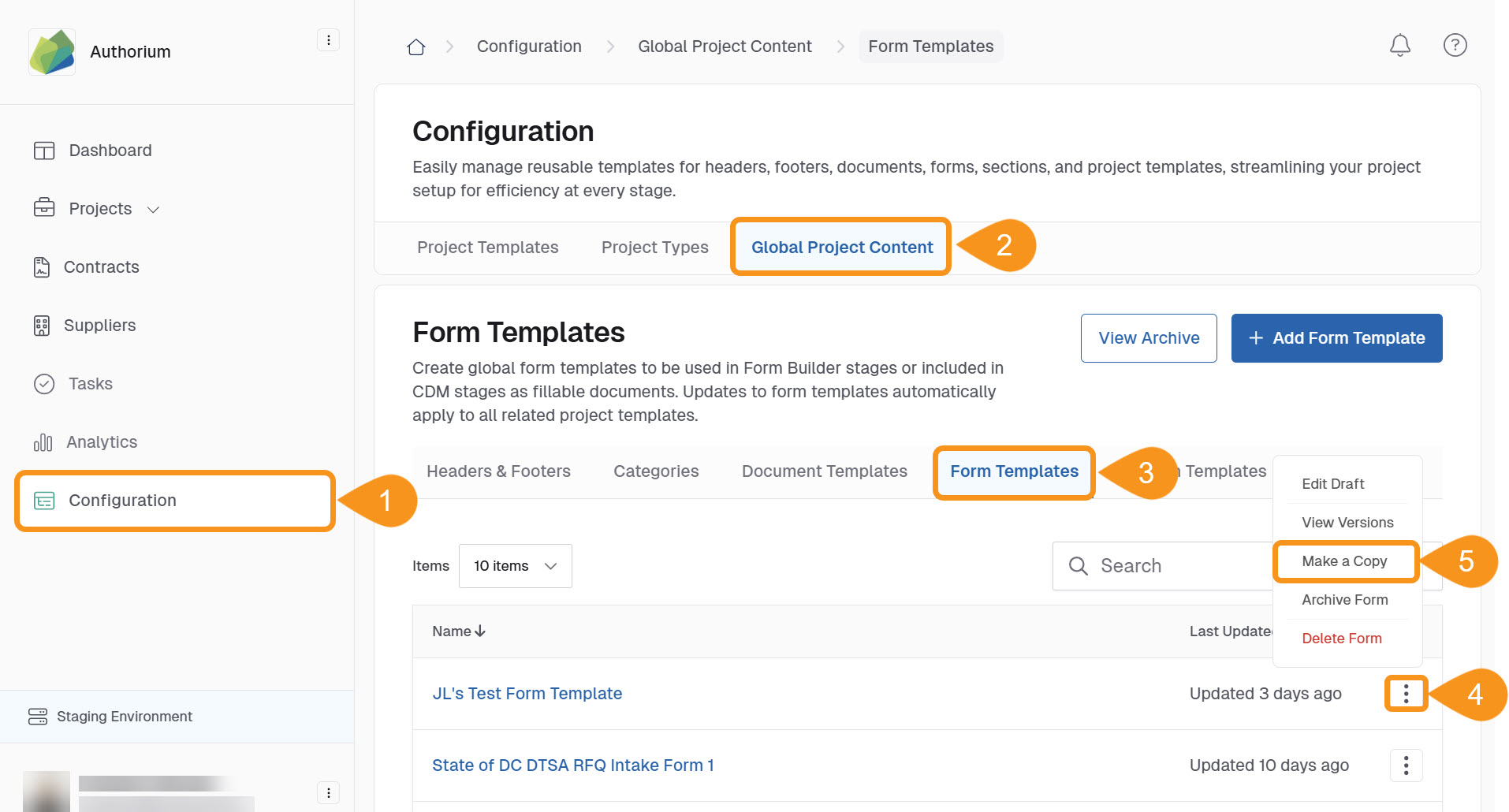 This how-to guide focuses on copying Form Templates in Authorium. Copying a Form Template allows you to create an identical version of an existing template, which can then be modified as needed without altering the original.