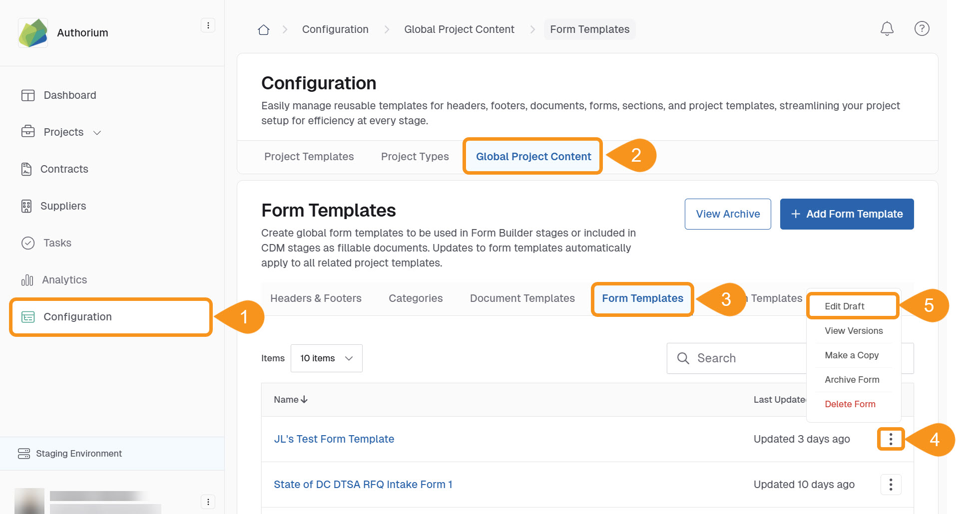 This how-to guide focuses on editing Form Templates in Authorium. Once a Form Template is created, you can modify its title, description, and fields as needed. This allows for updates to better fit project requirements.