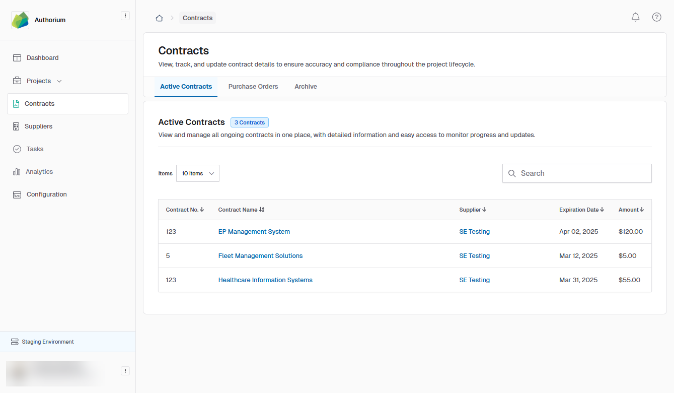 The Contract Repository provides a centralized and organized system for storing and managing all contracts and related documents. This feature enables users to view, search, and manage active contracts.