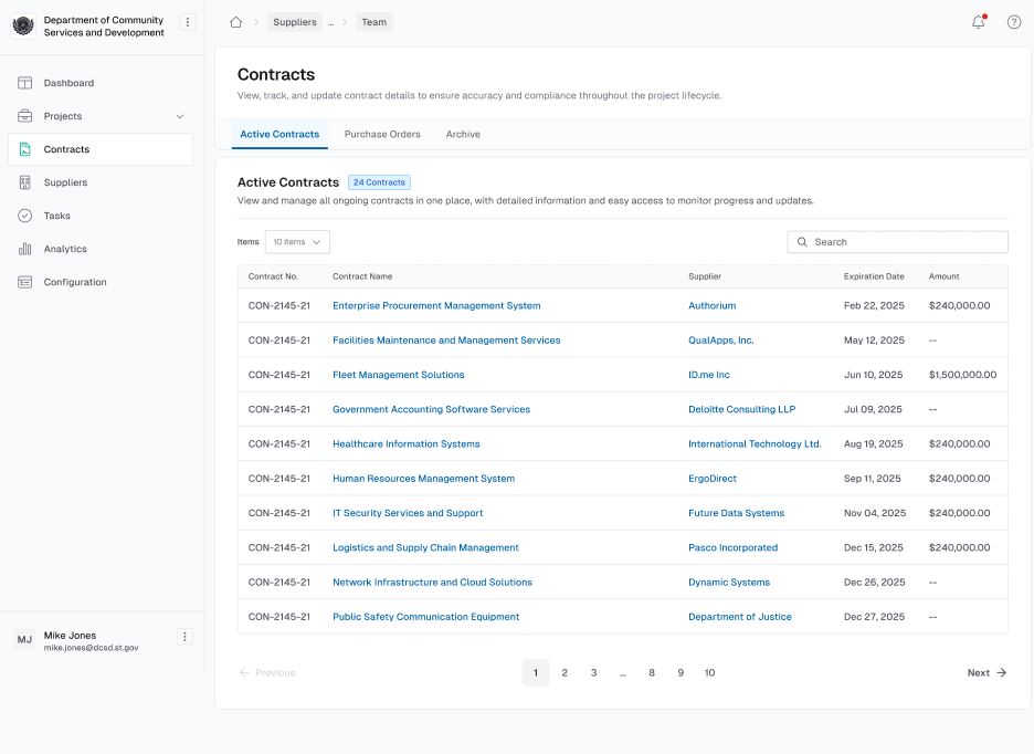 - Agencies can now view all supplier-uploaded documents in a dedicated section.